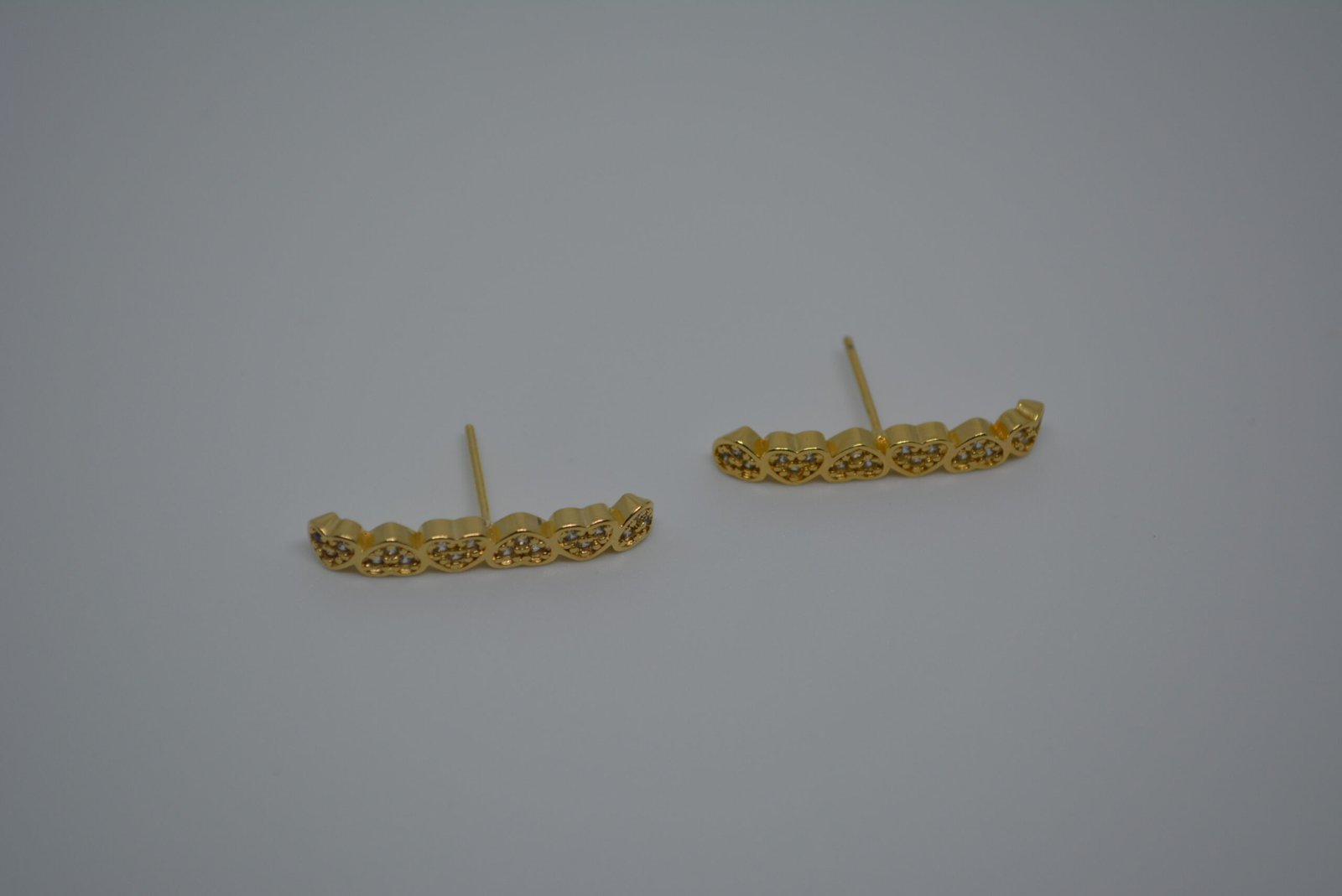 Aercuff Corações: Adicione um toque moderno e romântico ao seu visual. Este ear cuff em formato de corações cravejados é perfeito para usar sozinho ou combinado com outros brincos. Uma peça statement que valoriza a beleza do seu rosto. Banhado a ouro 18k.
