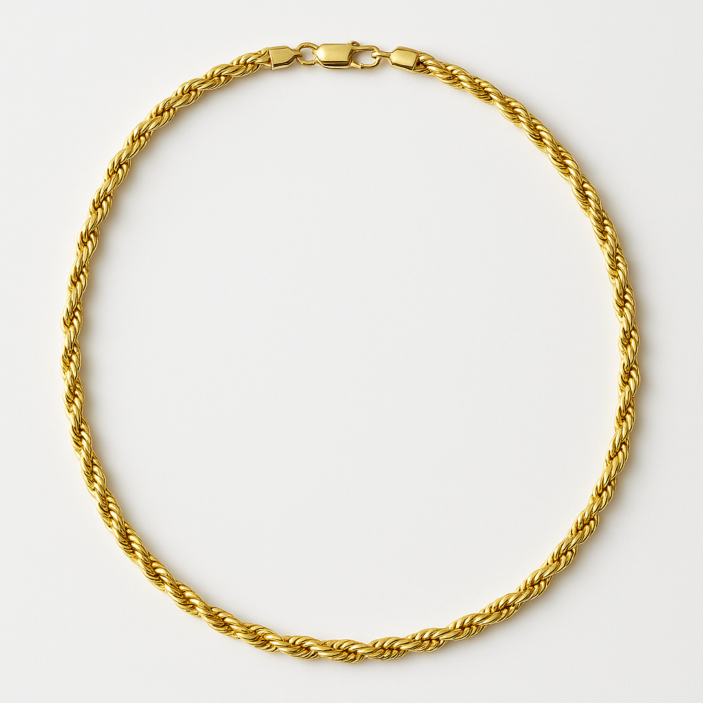 - Elegância e sofisticação em cada detalhe: o clássico cordão baiano com design trançado, conhecido por sua resistência e brilho marcante.