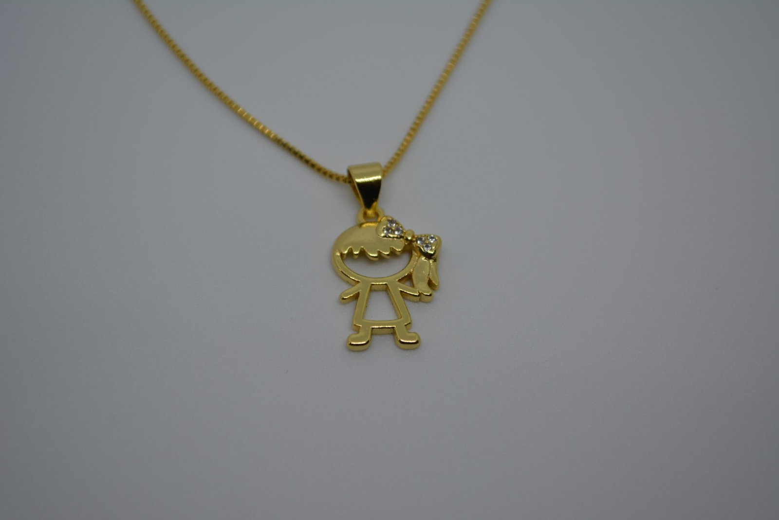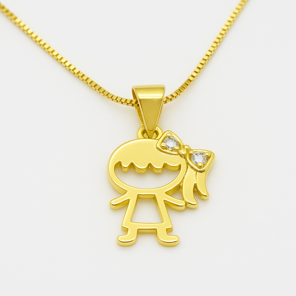 Descubra o Colar Menina Lacinho, um acessório delicado que representa carinho, proteção e conexão. O design elegante combina um pingente de menina pequena com um lacinho detalhado, criando um colar único e cheio de significado.