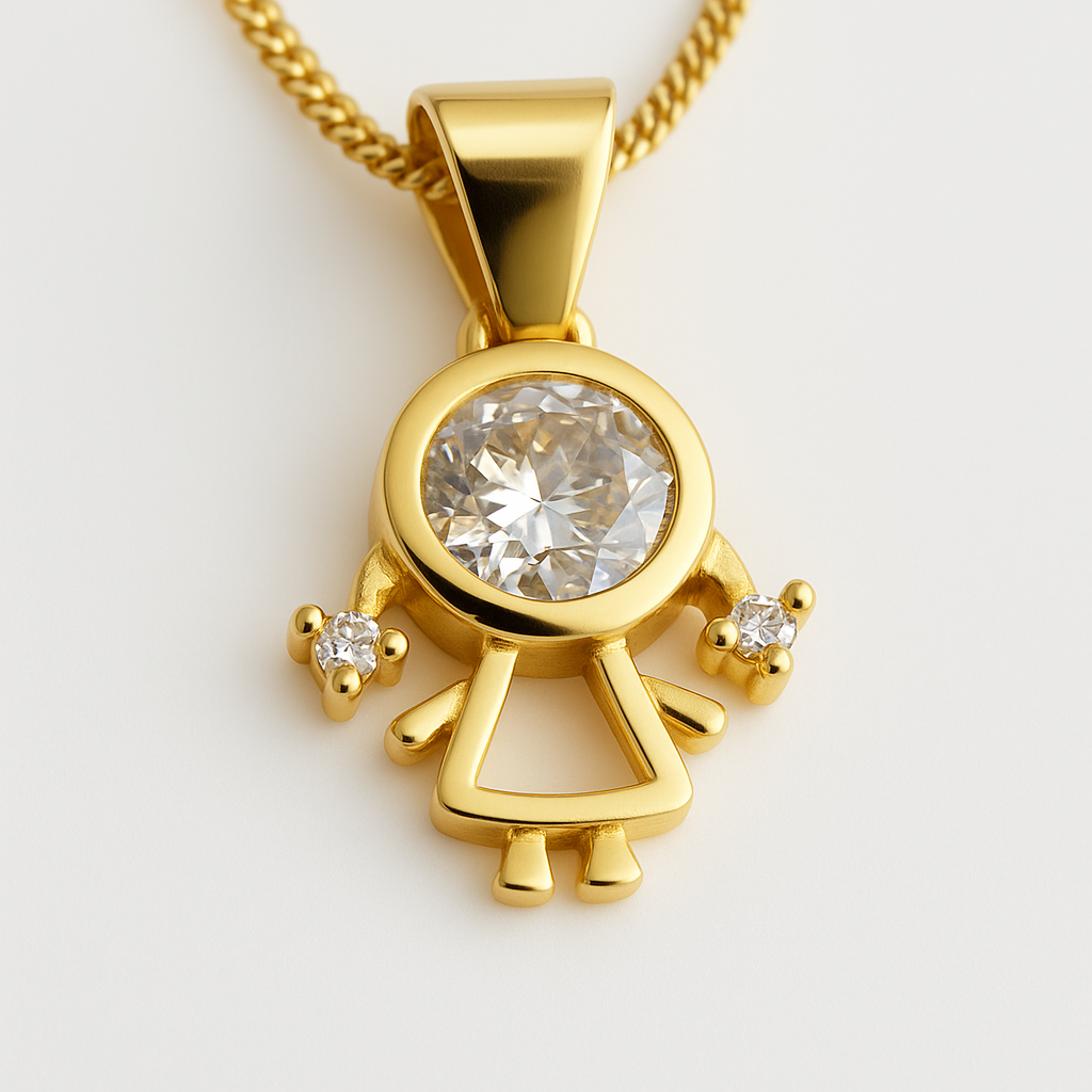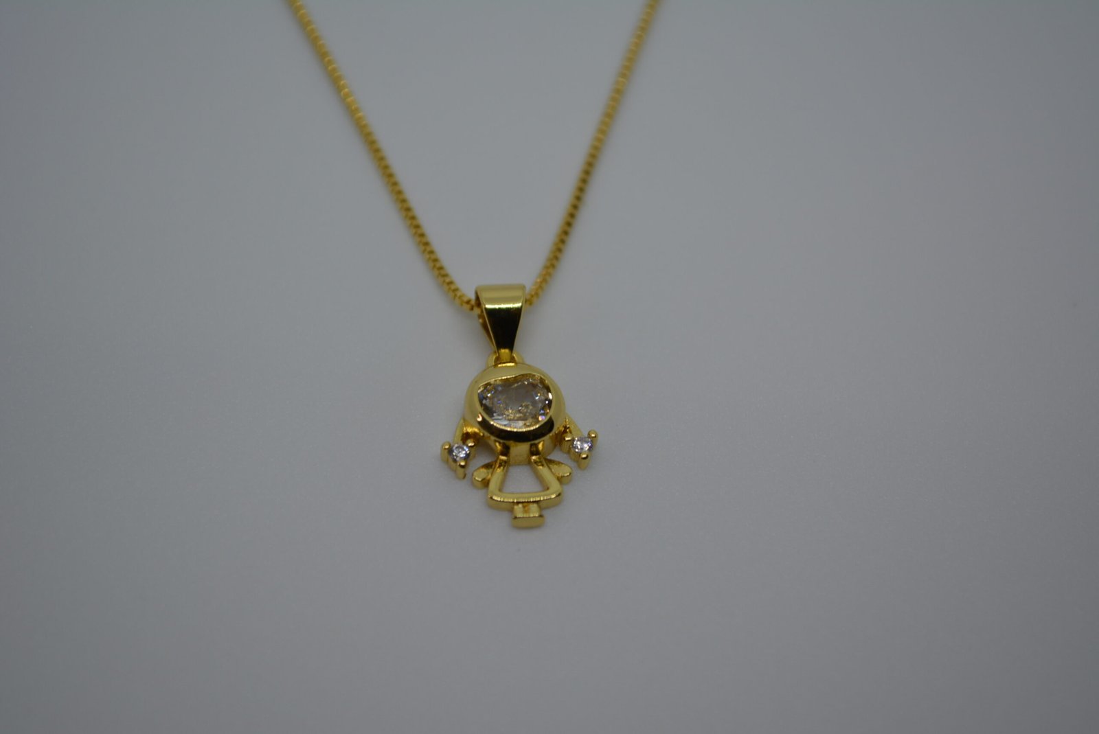 Pingente menina pequena com traços refinados e detalhes encantadores.