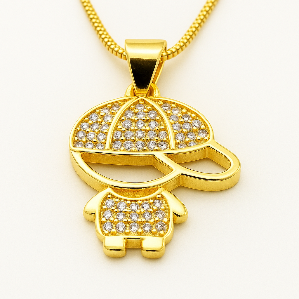 ✔ Design Emocional: Pingente grande em formato de menino cravejado, representando proteção e orgulho.