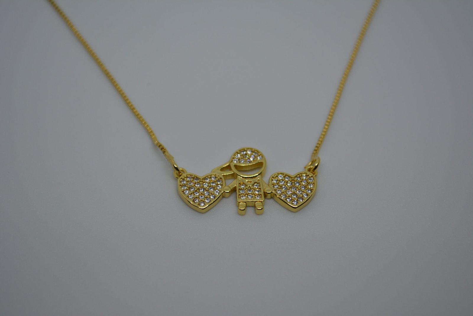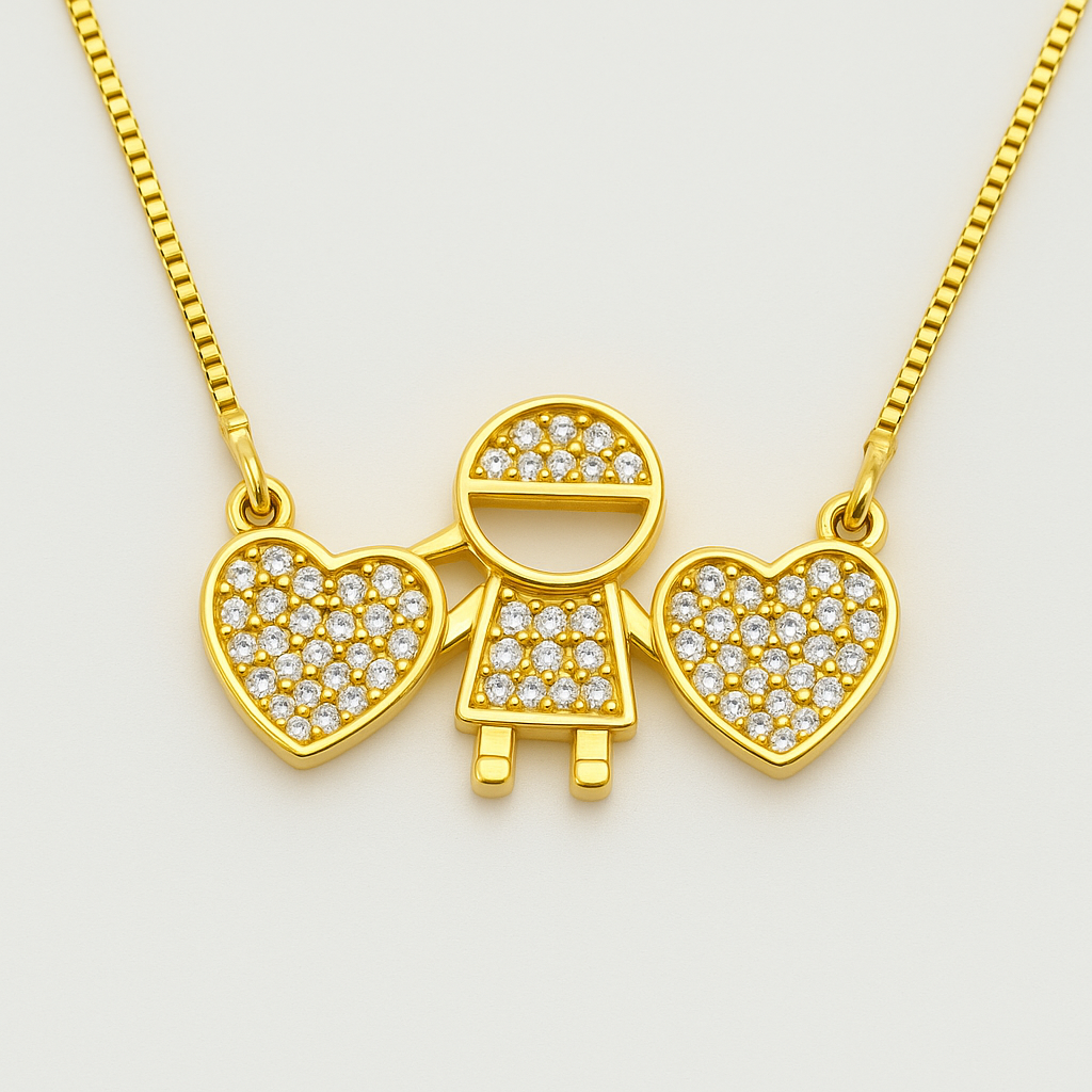 Celebre o amor e a alegria com este encantador Colar Laço Materno, uma peça única que simboliza afeto e felicidade! Feito em metal banhado a ouro 18k, o colar traz dois corações delicados e um charmoso menino, adornados com pedras de zircônia que brilham intensamente.