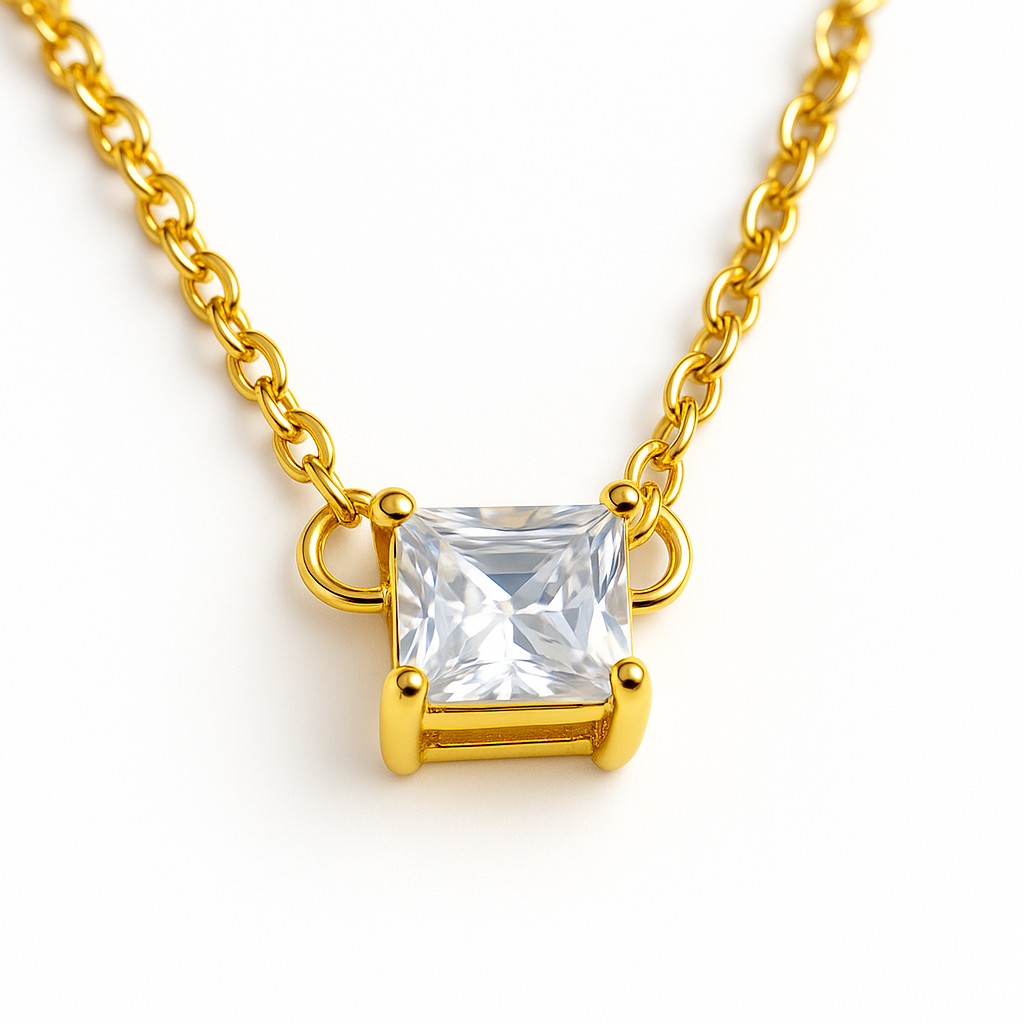 ✨ Corrente Dourada com Pedra Quadrada – Geometria e Brilho em Harmonia ✨