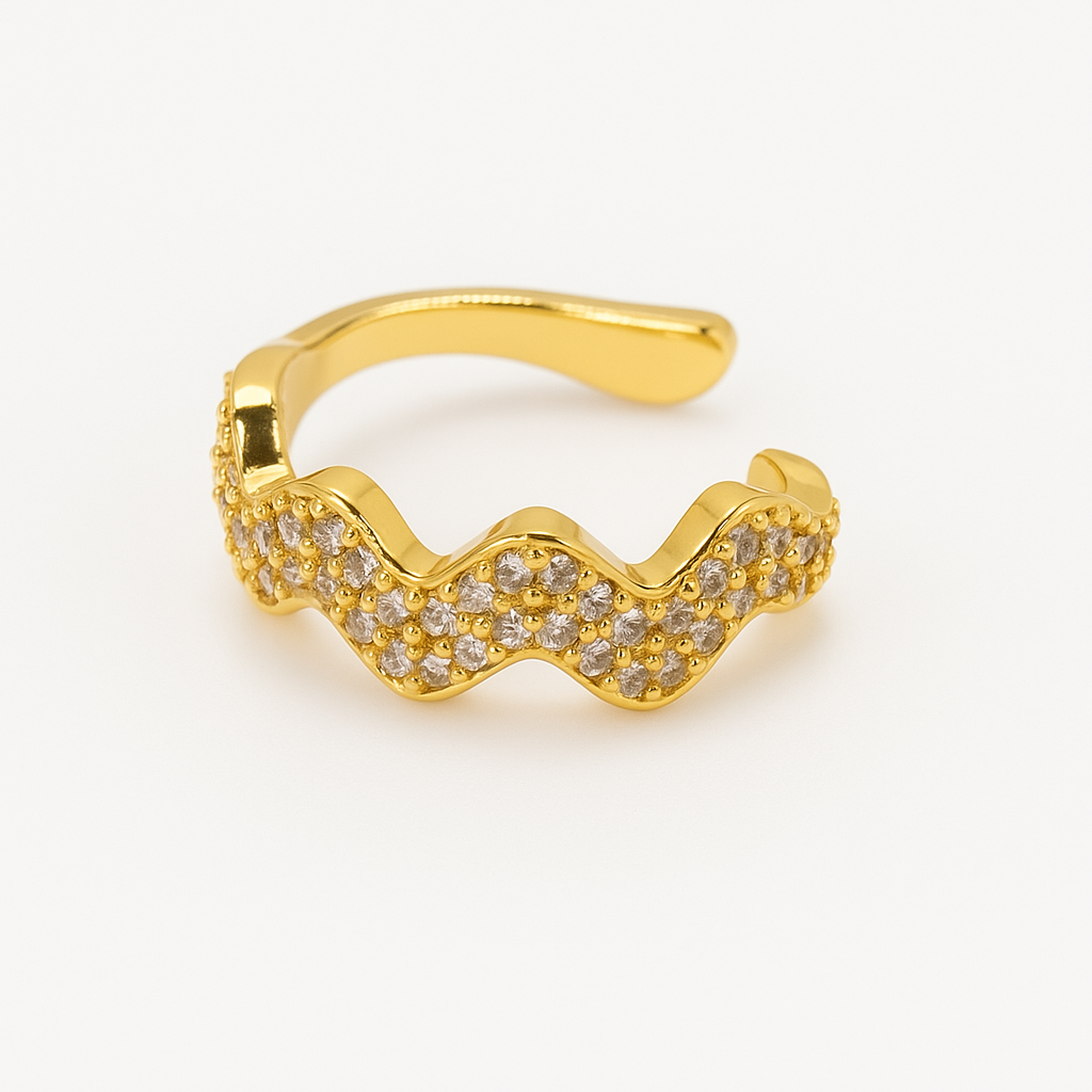 Traga sofisticação e movimento ao seu estilo com o nosso Fake Piercing Onda . Este piercing é projetado com um design ondulado que traz um charme único, adornado com pedras de zircônia e banhado a ouro 18k.