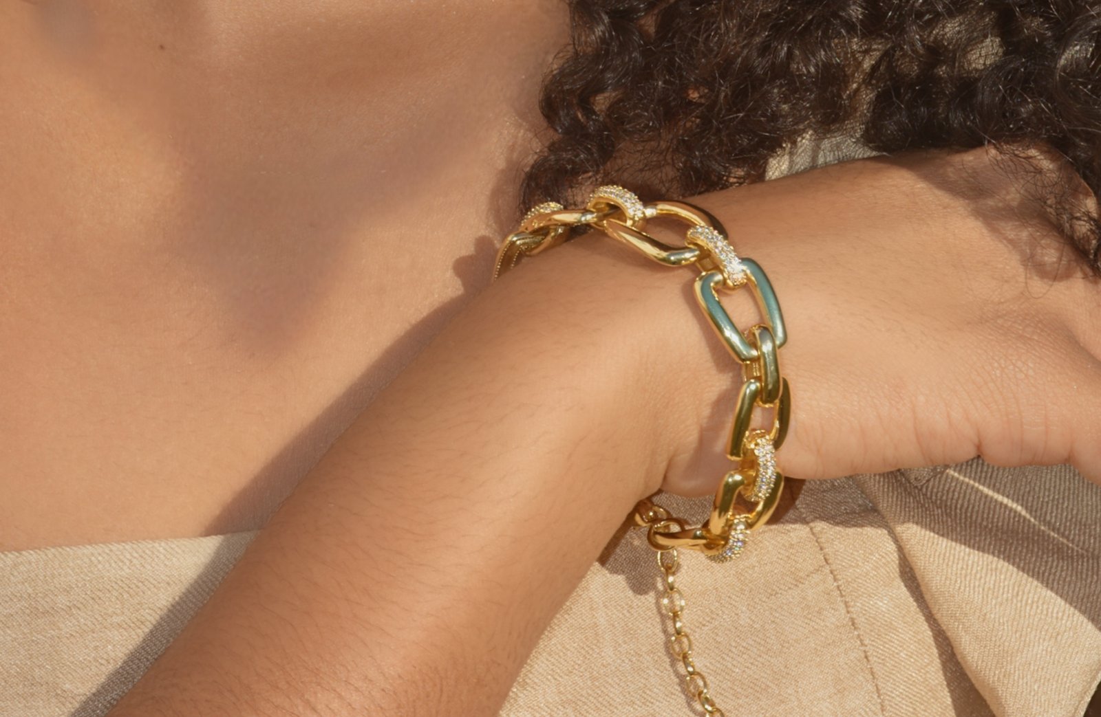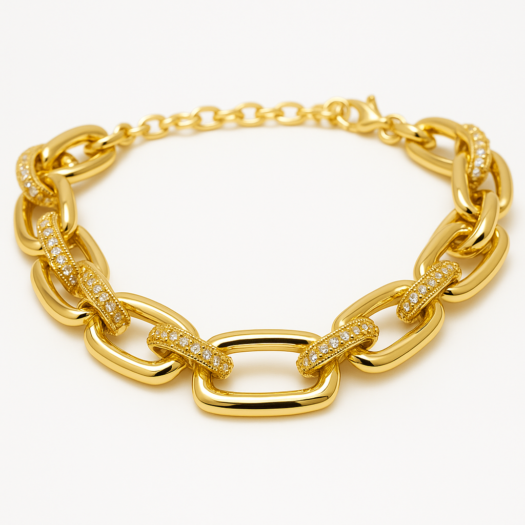 Um acessório clássico que combina estilo e sofisticação. Seu design com elos interligados proporciona um toque moderno e elegante.