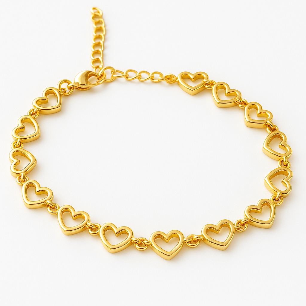 Celebre conexões especiais com a Pulseira Dois Corações , uma joia banhada a ouro 18k que combina simplicidade e significado em um design atemporal. Com dois corações entrelaçados e acabamento impecável, esta peça é perfeita para quem busca elegância discreta no pulso.