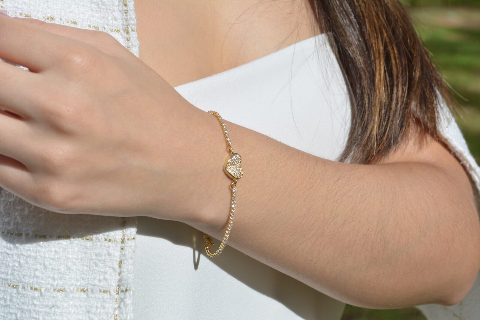 Descubra a Pulseira Charme, um acessório refinado que une o brilho das pedras cravejadas com um design clássico e cheio de significado.
