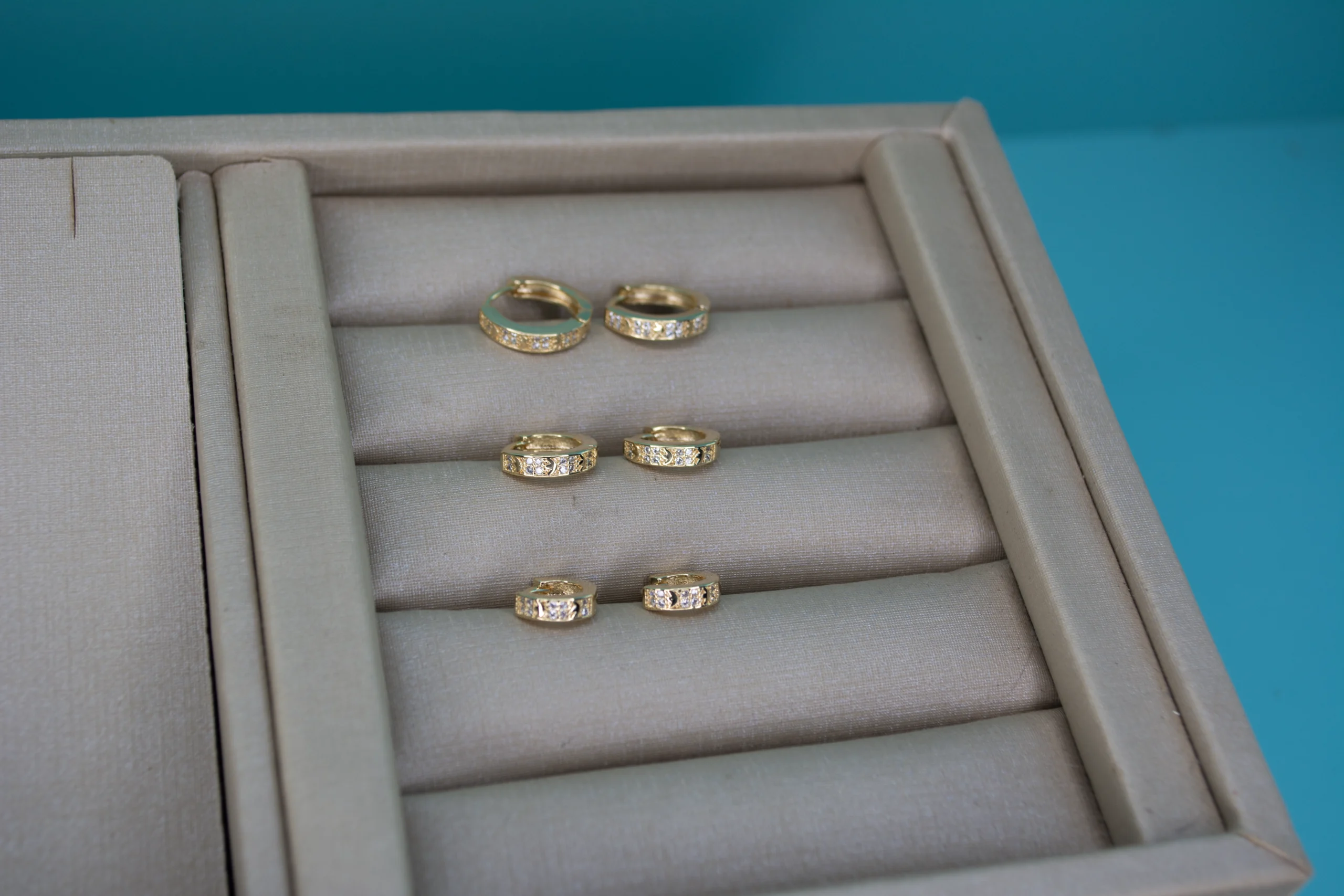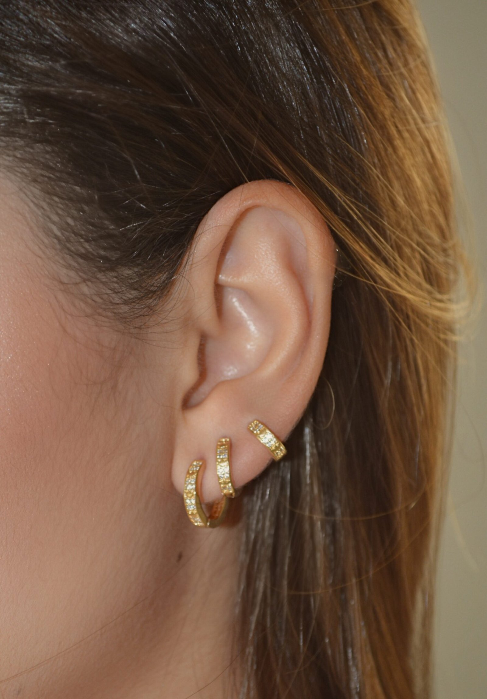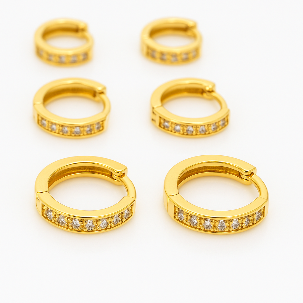 Apresentamos o Trio Argola Cravejada, o conjunto perfeito para quem deseja sofisticação e versatilidade em peças que brilham tanto quanto você. Banhado em ouro 18k.